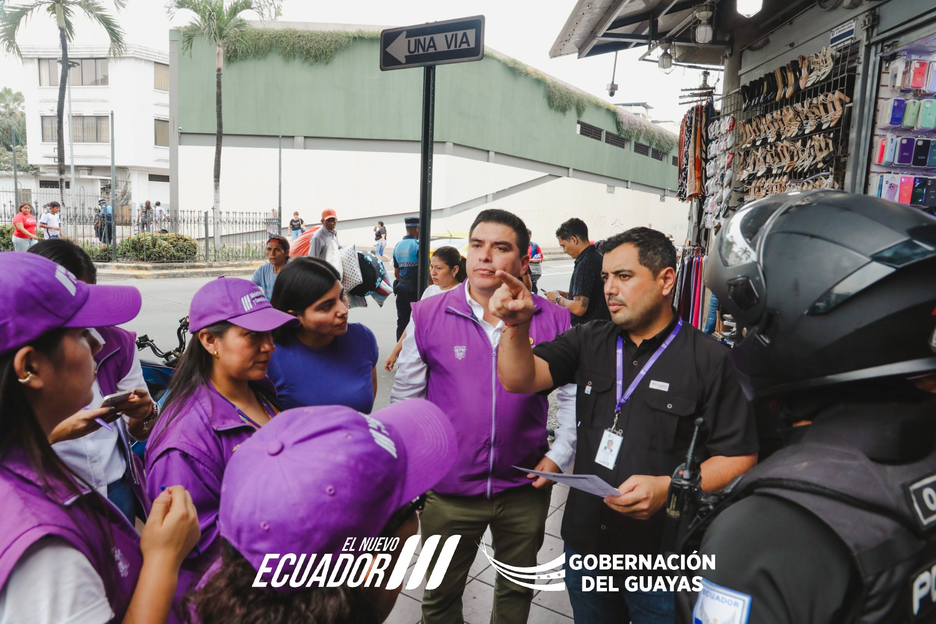 En un gesto que va más allá de la gestión pública, y que responde al compromiso directo de la gobernadora del Guayas, Zaida Rovira, con los comerciantes de la Bahía de Guayaquil, el jefe político del cantón, Juan Diego Tandazo, y el coordinador zonal 8 del Ministerio de la Mujer y Derechos Humanos, Alex León, recorrieron este martes 17 de junio el corazón comercial del puerto principal para escuchar, acompañar y atender a quienes han vivido días difíciles tras los recientes actos de violencia, y consolidar su permanencia en el sector.