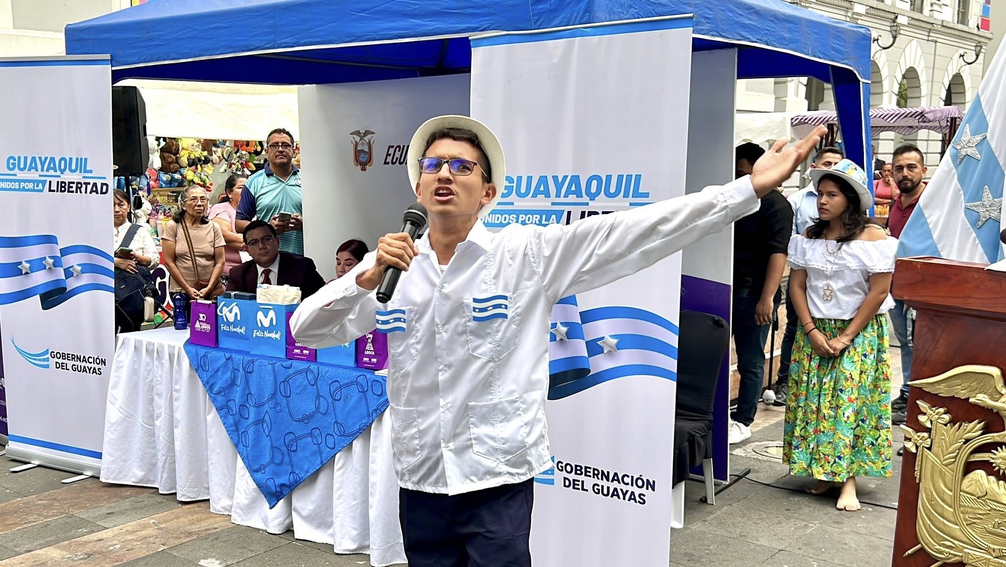 Guayaquil, 7 de octubre de 2025.- La Plaza de la Administración se llenó de talento, civismo y emoción durante el concurso de Poemas y Amorfinos “Guayaquil, Unidos por la Libertad”, un homenaje al espíritu guayaquileño en conmemoración de los 205 años de independencia de la ciudad.