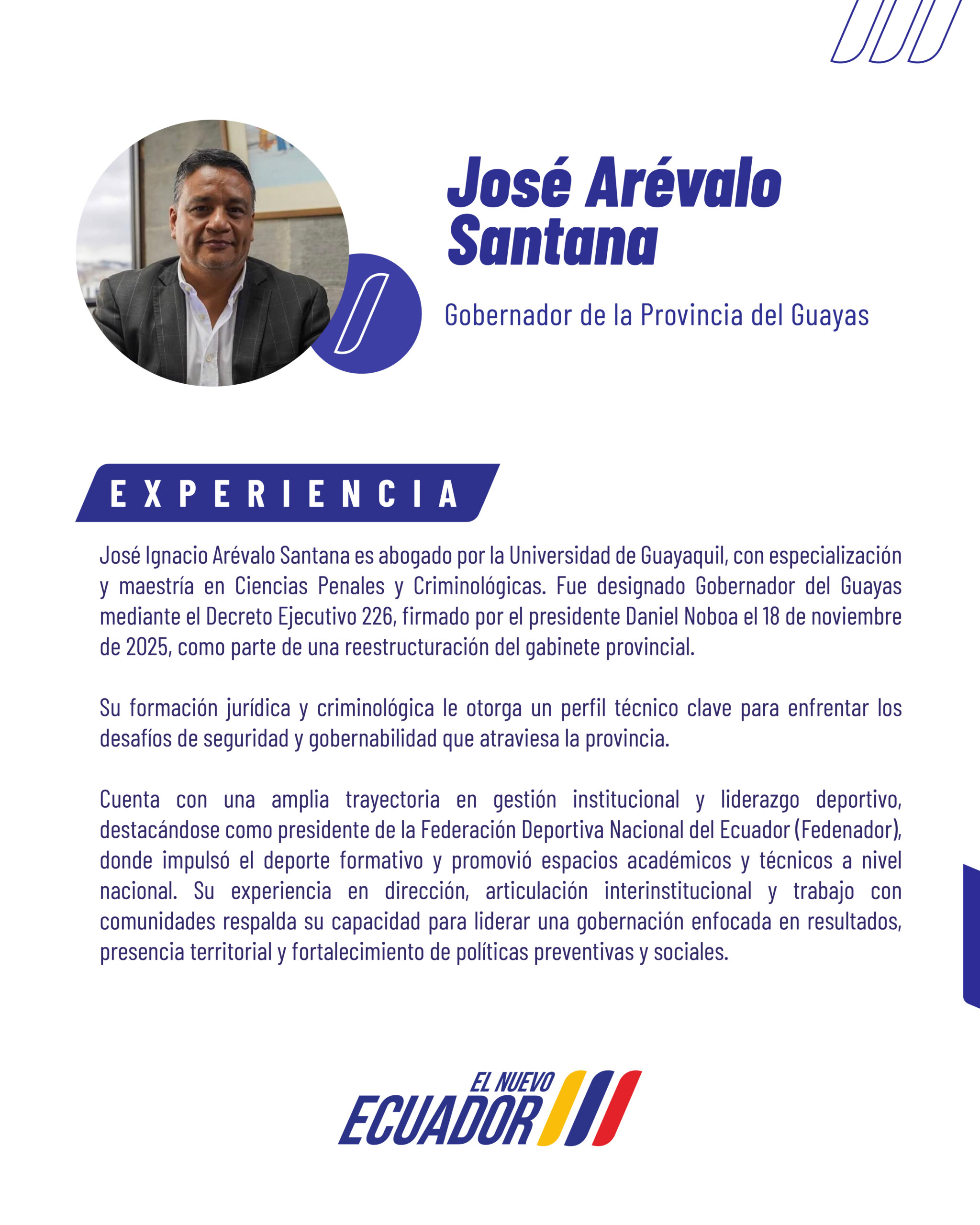 Mediante el Decreto Ejecutivo 226, el presidente Daniel Noboa designó como gobernador del Guayas al abogado, José Ignacio Arévalo.