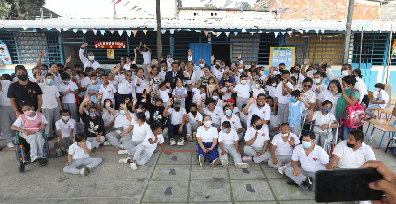 Con un cántico de esperanza, así recibieron los 147 estudiantes de la Unidad Educativa Especializada Monserratt Moreno Maruri, al Dr. Lorenzo Calvas, gobernador del Guayas, quien visitó el centro de estudios por conmemorarse este 3 de diciembre, el Día Internacional de las Personas con Discapacidad. Desde el Gobierno del Encuentro se vela por los derechos de las personas con discapacidad para logar una sociedad más inclusiva y con los mismos derechos.