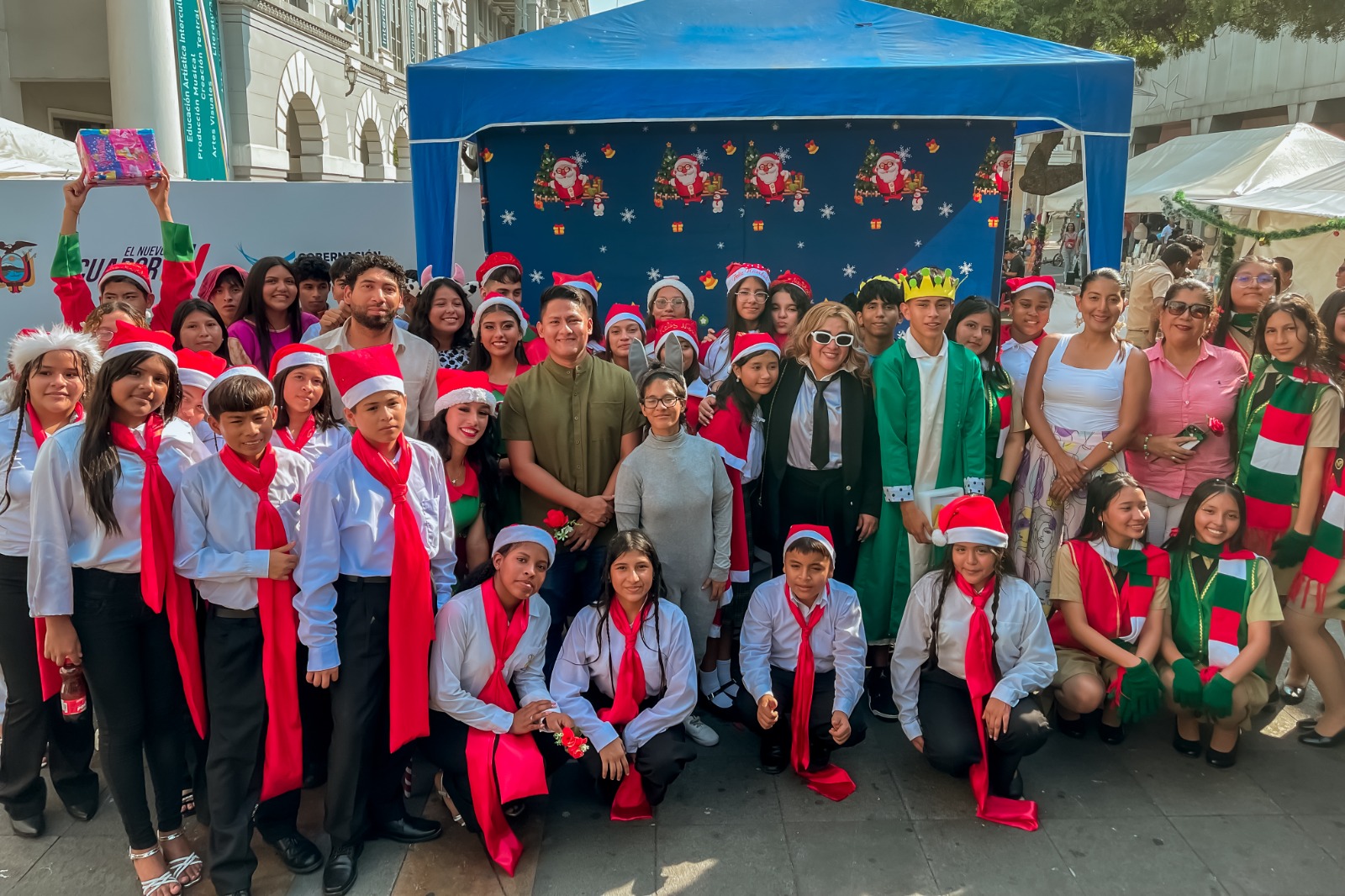Guayaquil, 10 de diciembre de 2025.- La Plaza de Administración de la Gobernación del Guayas se llenó de voces, color y creatividad durante la tercera clasificatoria de Guayas vive la Navidad, concurso organizado por la Gobernación en coordinación con el Ministerio de Educación.
