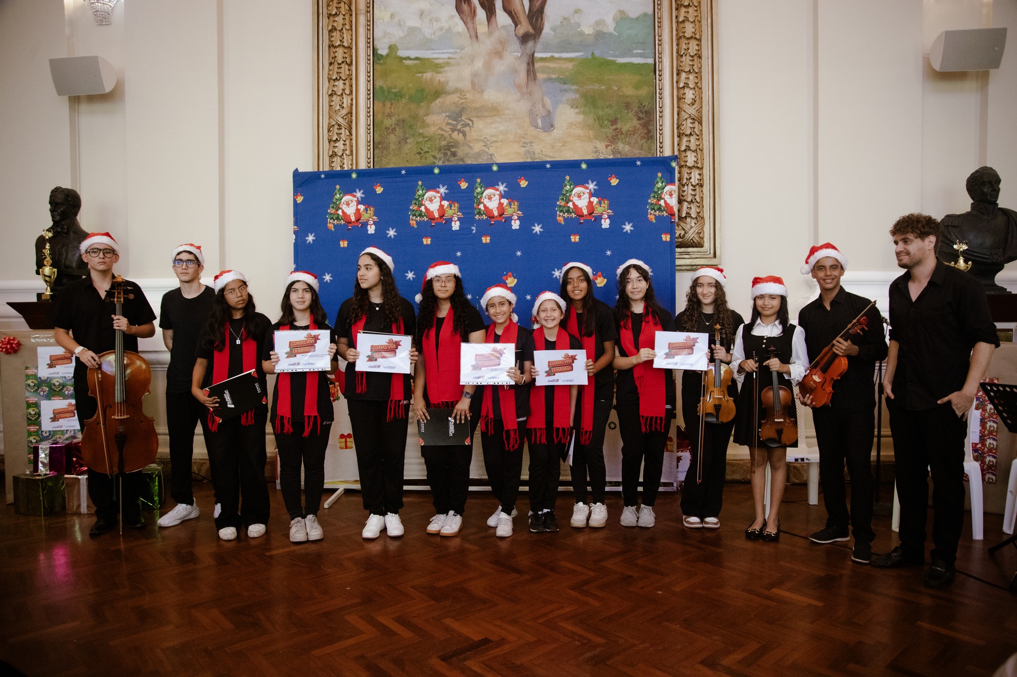 Guayaquil, 22 de diciembre de 2025.- El Salón Simón Bolívar de la Gobernación del Guayas se vistió de música, emoción y espíritu navideño durante la gran final del concurso de coros “Guayas Vive la Navidad”, iniciativa de la Gobernación del Guayas, desarrollada en coordinación con el Ministerio de Educación.