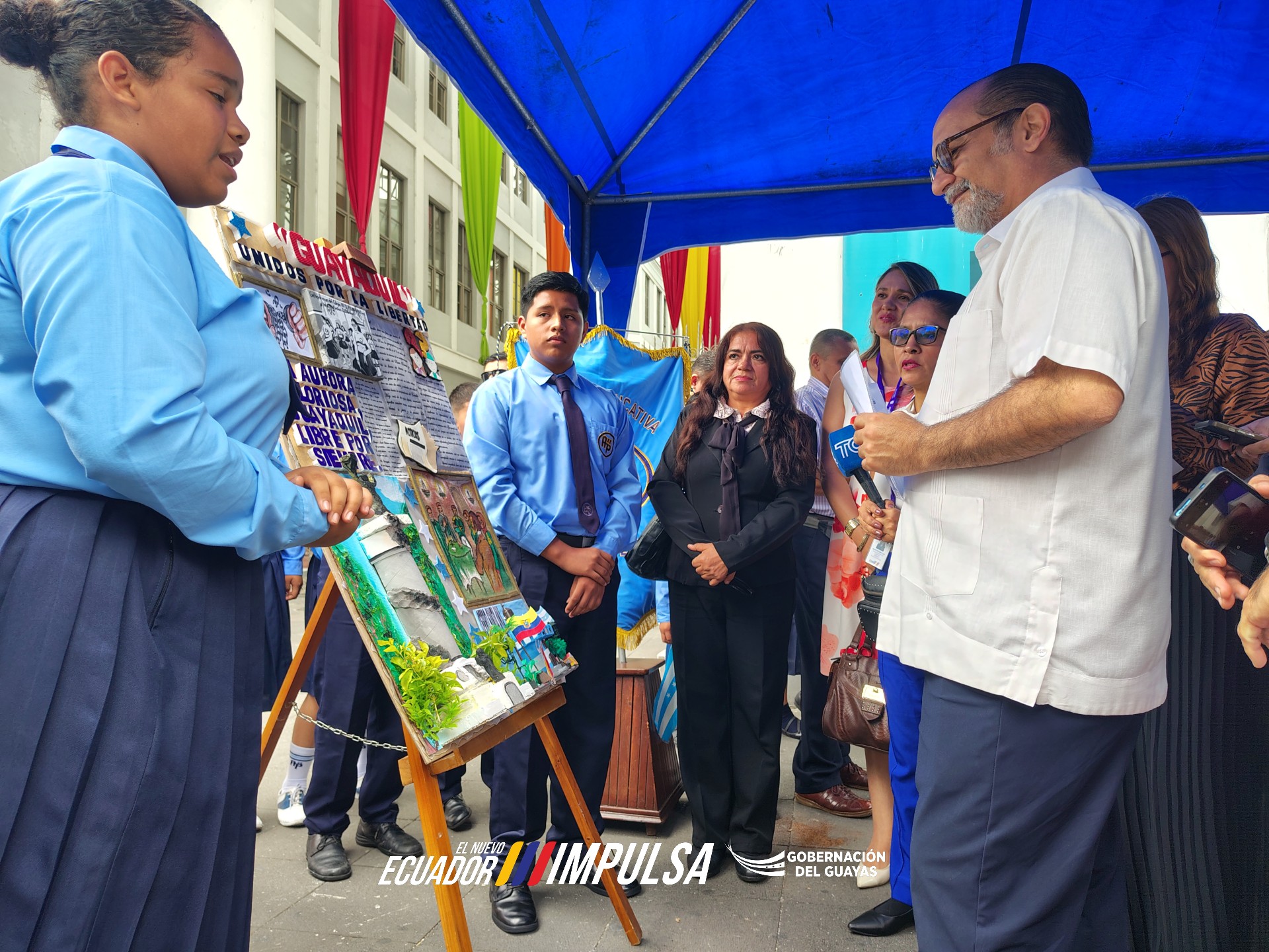 La jornada inició en el Palacio Simón Bolívar con la presencia del gobernador Humberto Plaza y más de 200 estudiantes, destacando la oratoria “Guayaquil, mi orgullo” y la emotiva interpretación musical de Ángela Díaz del Conservatorio Antonio Neumane”