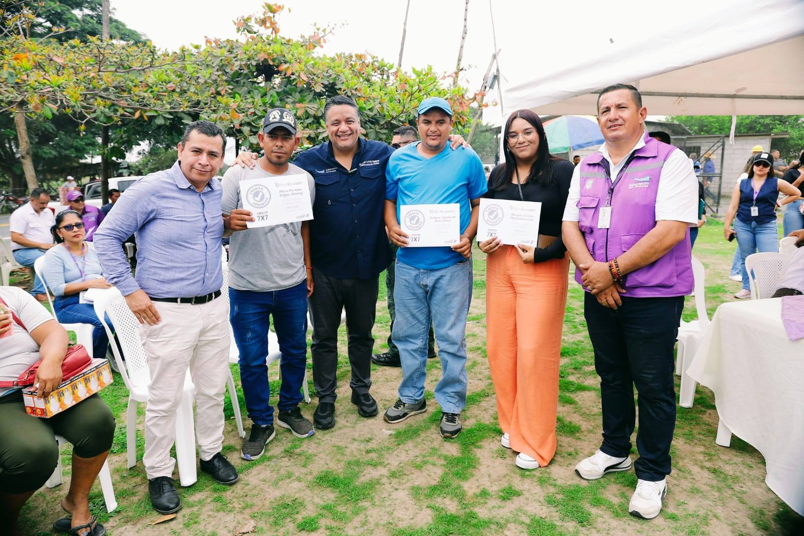 Adicionalmente, en el marco de esta Brigada Social se entregaron créditos productivos para impulsar el emprendimiento local: créditos Violeta y créditos 7×7, cada uno por USD 3.000, canalizados a través de BanEcuador. Estos financiamientos permitieron a emprendedores —principalmente mujeres y pequeños negocios— acceder a capital en condiciones favorables.