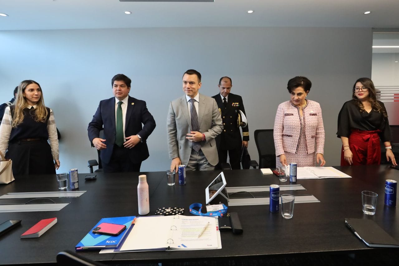 Daniel Noboa, durante esta jornada, también se reunió con inversionistas canadienses. En la cita de alto nivel, el Mandatario explicó que la nueva visión del Gobierno Nacional es demostrar que Ecuador es un país con alto potencial para la inversión extranjera, la generación de empleo local, gracias a las políticas económicas que generan confianza en el mercado internacional.