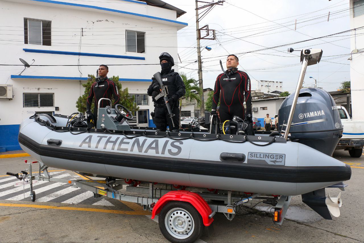 Con el fin de fortalecer el trabajo operativo del Grupo Especial Móvil Antinarcóticos (GEMA) de la Policía Nacional, la Embajada de Francia realizó hoy la entrega de equipos de buceo y un bote semirrígido, valorados en más de 300 mil dólares. Estos equipos permitirán al GEMA realizar operaciones de interdicción marítima y fluvial, así como de búsqueda y rescate, en el marco de la lucha contra el crimen organizado que lidera el presidente Daniel Noboa Azin.